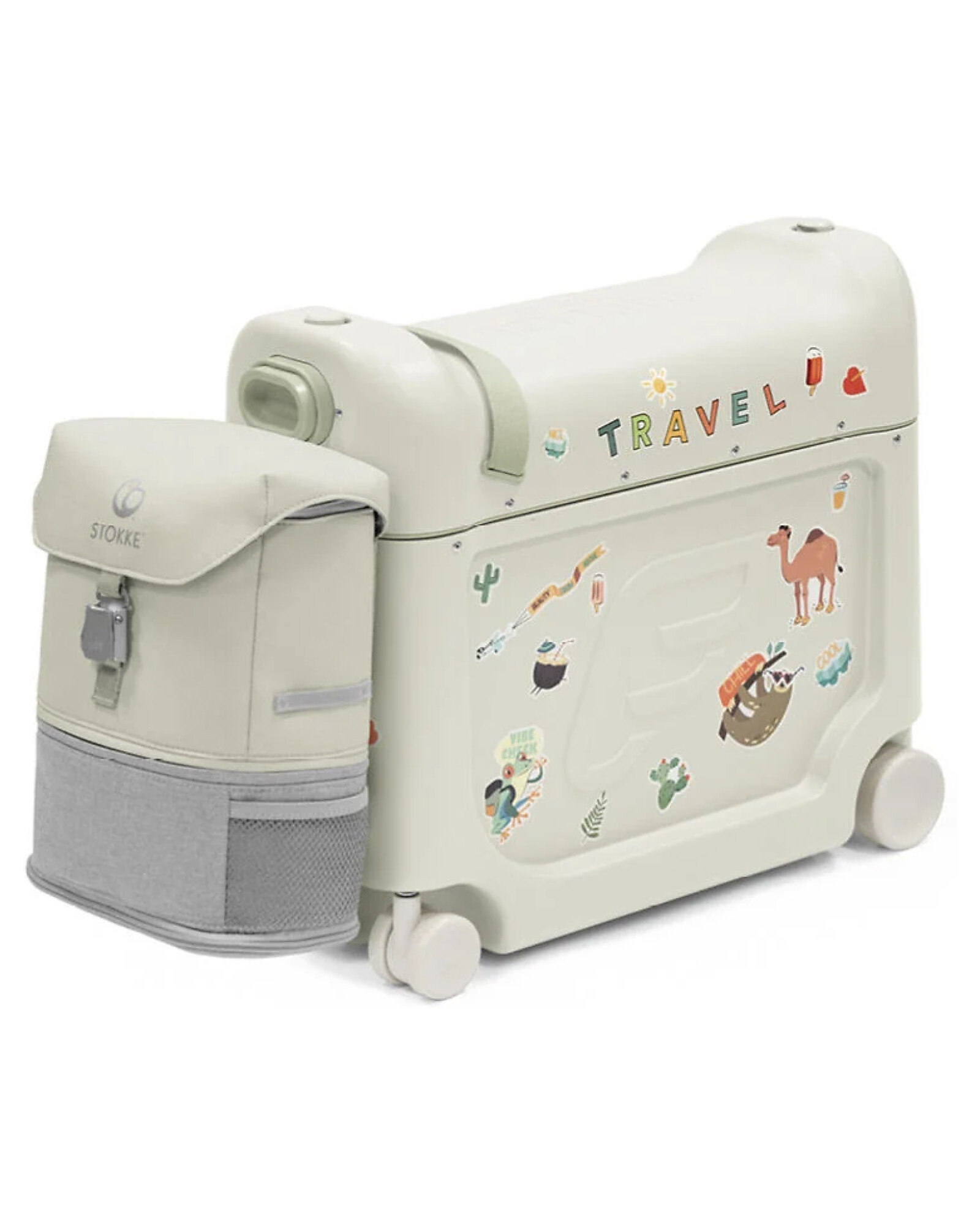 The JetKids Travel Set by Stokke consists of two essential accessories for little travellers: the ride-on suitcase BedBox™ (which works as a carry-on, a ride-on seat and even an in-flight bed) and the BackPack™, expandable and designed for explorers aged 2 to 7.