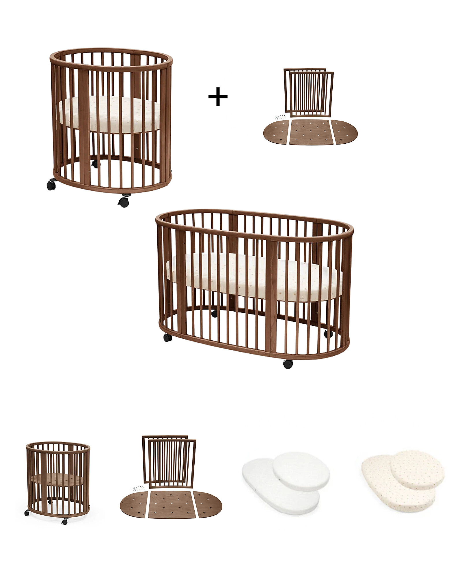 Transform your newborn's sleep into a comfortable and safe experience with the Sleepi™ Mini Set, consisting of a crib, mattress, and matching fitted sheet. The Sleepi™ Mini crib, with its iconic oval shape, envelops your baby in a warm and reassuring nest-like environment. Crafted from FSC® beech wood, it features rounded edges, a ventilated base, and four adjustment levels to accommodate growth. The swivel wheels with brakes allow for easy movement and gently rocking your little one, ensuring convenience and peace of mind.