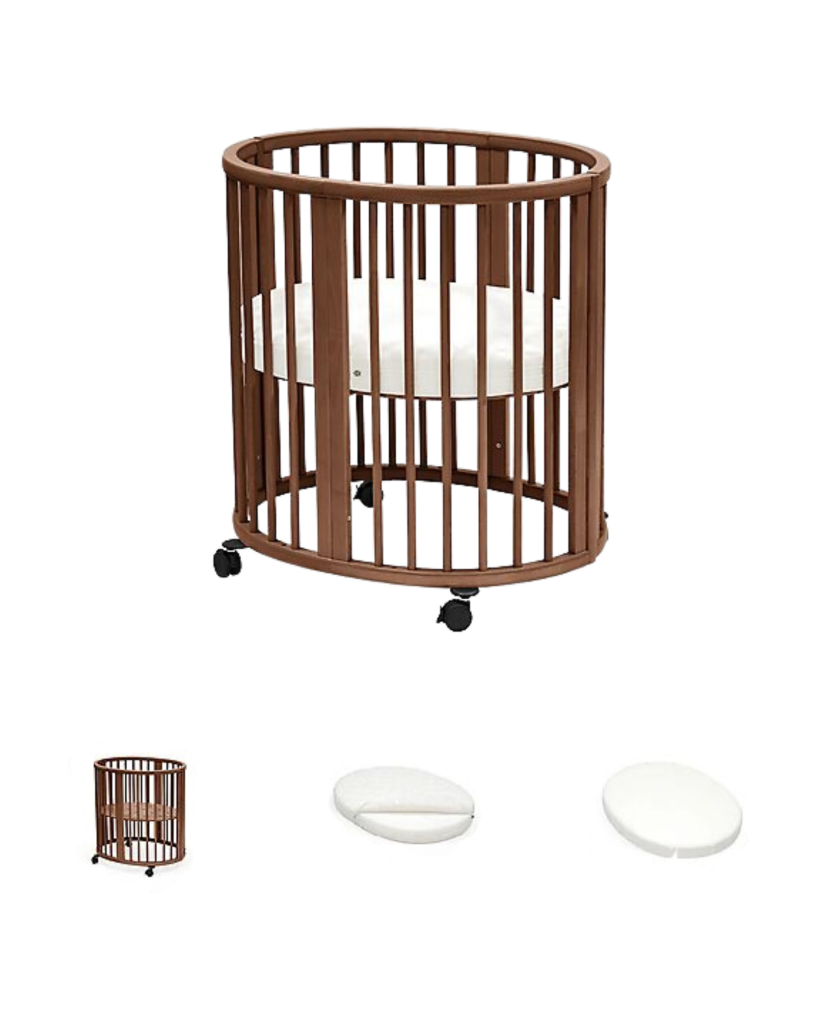 Transform your newborn's sleep into a comfortable and safe experience with the Sleepi™ Mini Set, consisting of a crib, mattress, and matching fitted sheet. The Sleepi™ Mini crib, with its iconic oval shape, envelops your baby in a warm and reassuring nest-like environment. Crafted from FSC® beech wood, it features rounded edges, a ventilated base, and four adjustment levels to accommodate growth. The swivel wheels with brakes allow for easy movement and gently rocking your little one, ensuring convenience and peace of mind.
