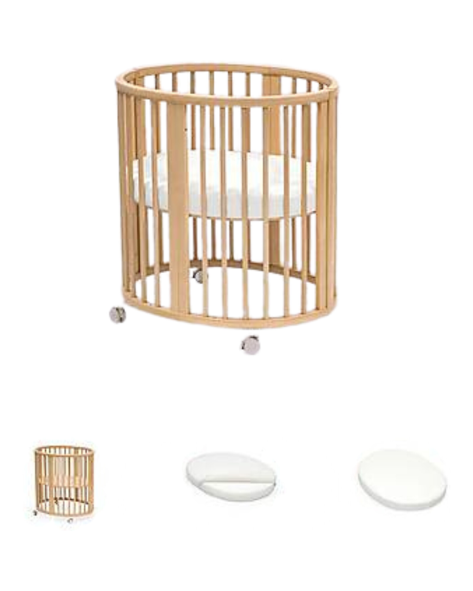 Transform your newborn's sleep into a comfortable and safe experience with the Sleepi™ Mini Set, consisting of a crib, mattress, and matching fitted sheet. The Sleepi™ Mini crib, with its iconic oval shape, envelops your baby in a warm and reassuring nest-like environment. Crafted from FSC® beech wood, it features rounded edges, a ventilated base, and four adjustment levels to accommodate growth. The swivel wheels with brakes allow for easy movement and gently rocking your little one, ensuring convenience and peace of mind.