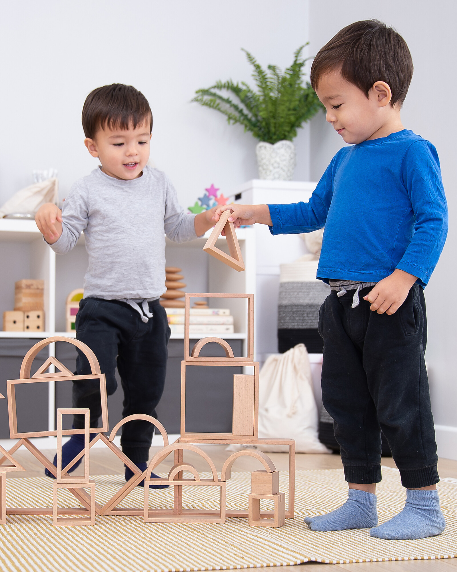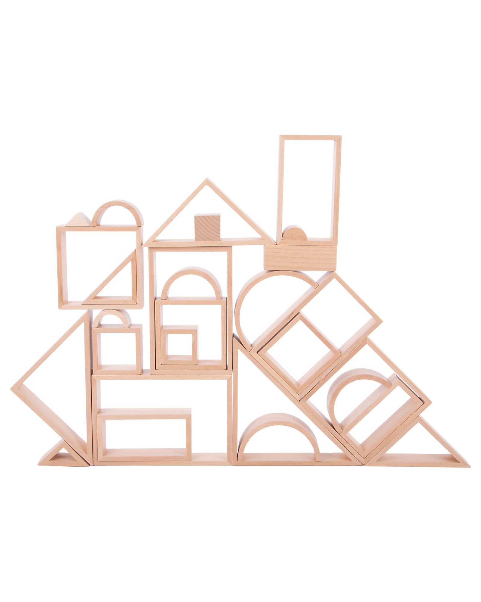 Made from beautiful smooth solid beech wood with a natural wood grain finish, these shape sets will allow your child to unleash their creativity and innovation.