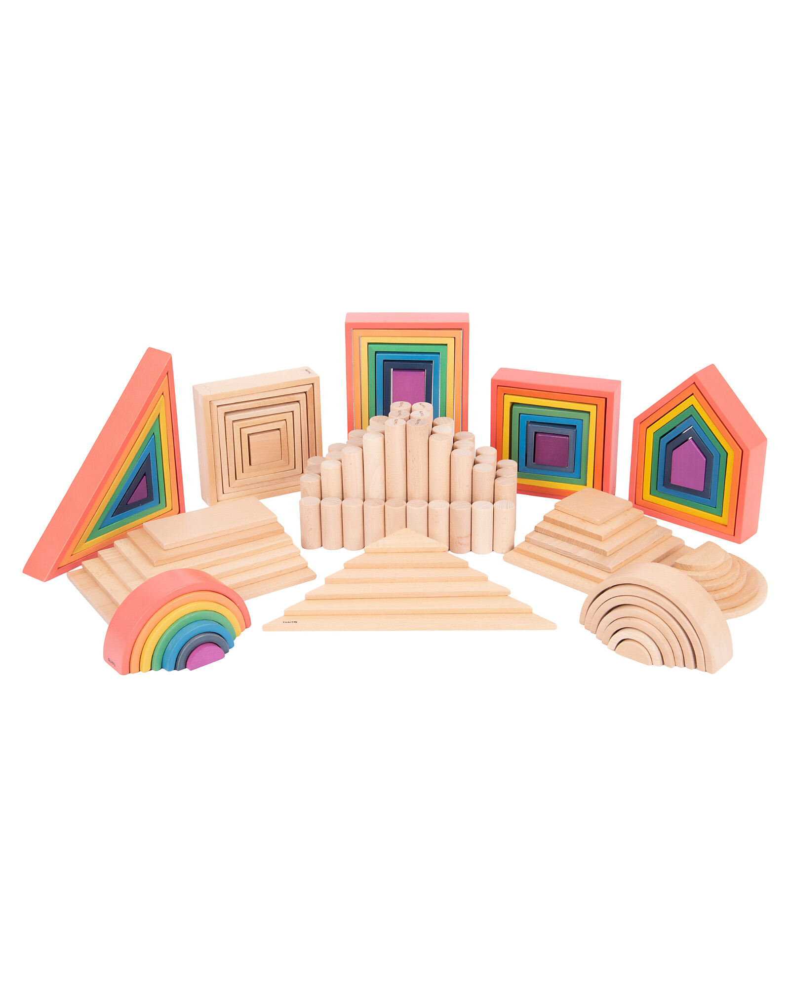 Beech Wood Architect Set - Rainbow - 28 Pieces - 12m+