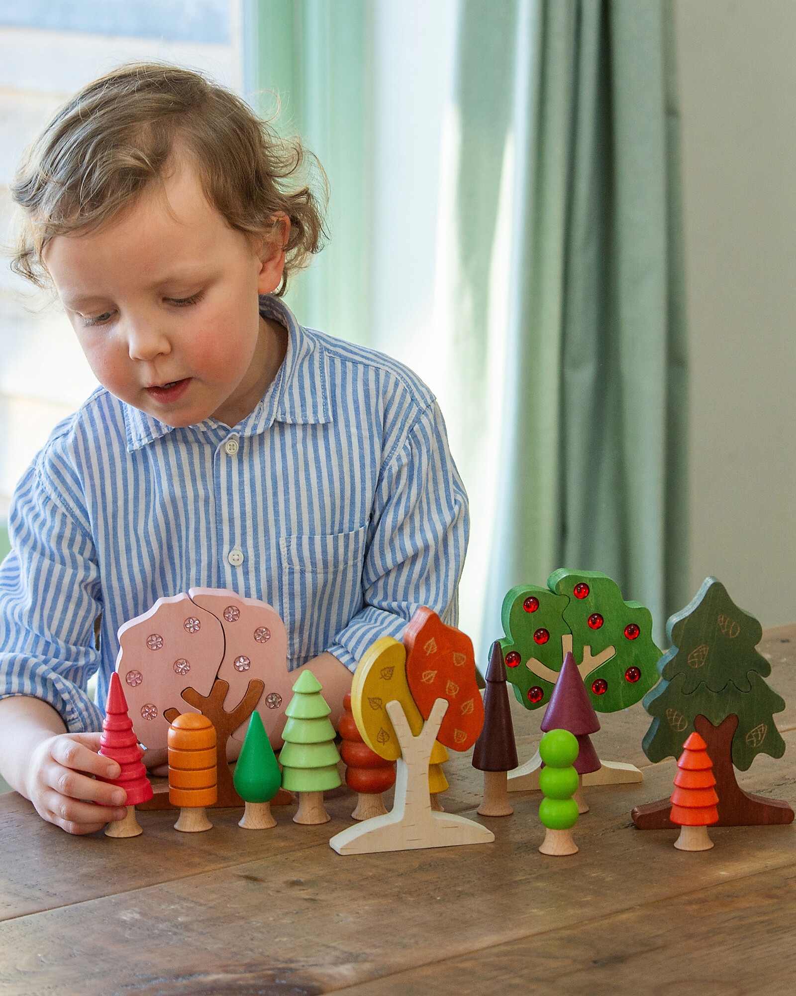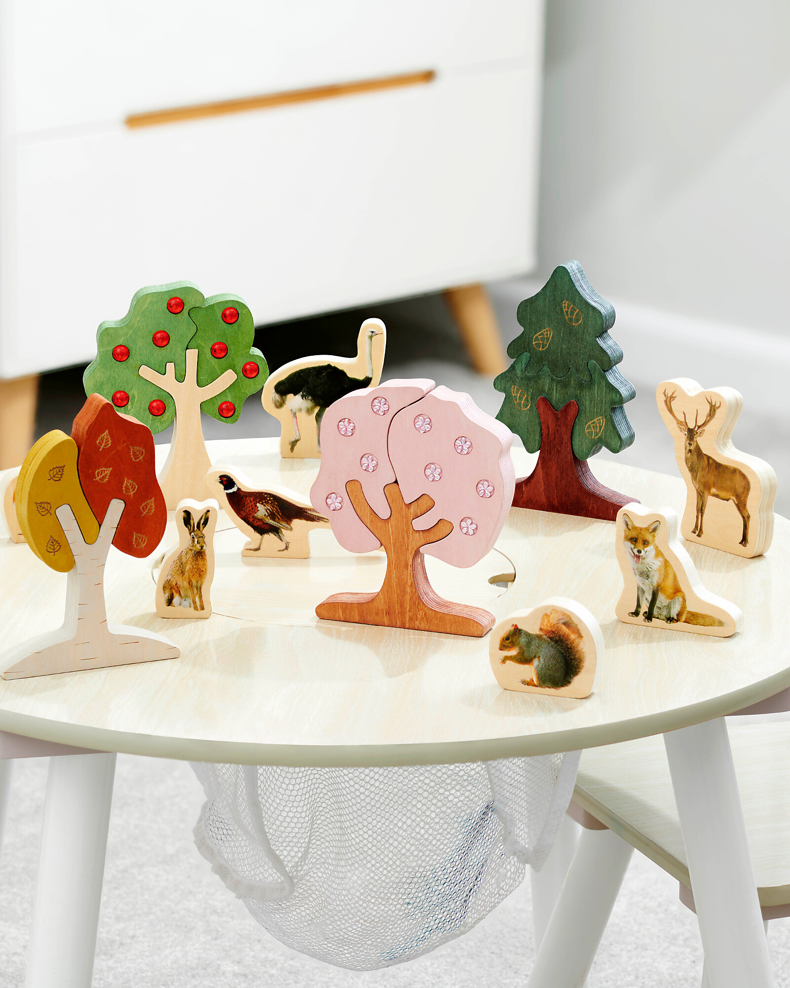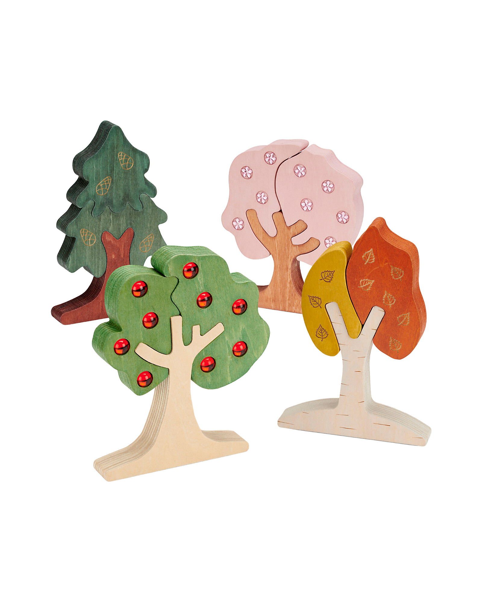 Explore the changing seasons with this beautiful set of solid wood trees, each representing a different time of year—evergreen for winter, cherry blossom for spring, apple for summer, and silver birch for autumn.