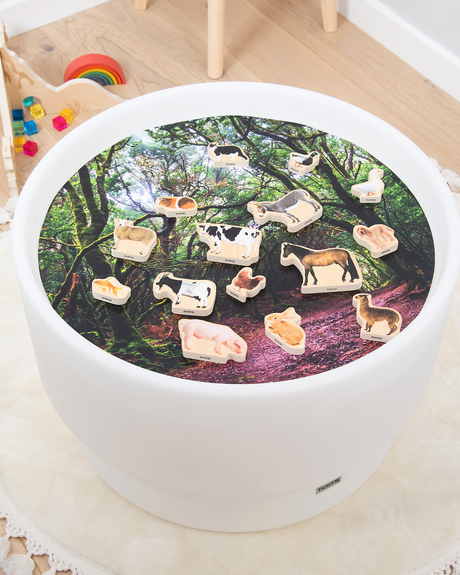 Made from thick and lightweight birch plywood, the tickit wooden pet blocks feature vibrant, full-color images of fifteen familiar pets on both sides, making them an excellent resource for imaginative play. These blocks are designed to engage children in creative storytelling, helping them develop descriptive language skills. Perfect for exploring the world of animals commonly found on farms, fields, or at home, these blocks offer endless learning and fun opportunities.