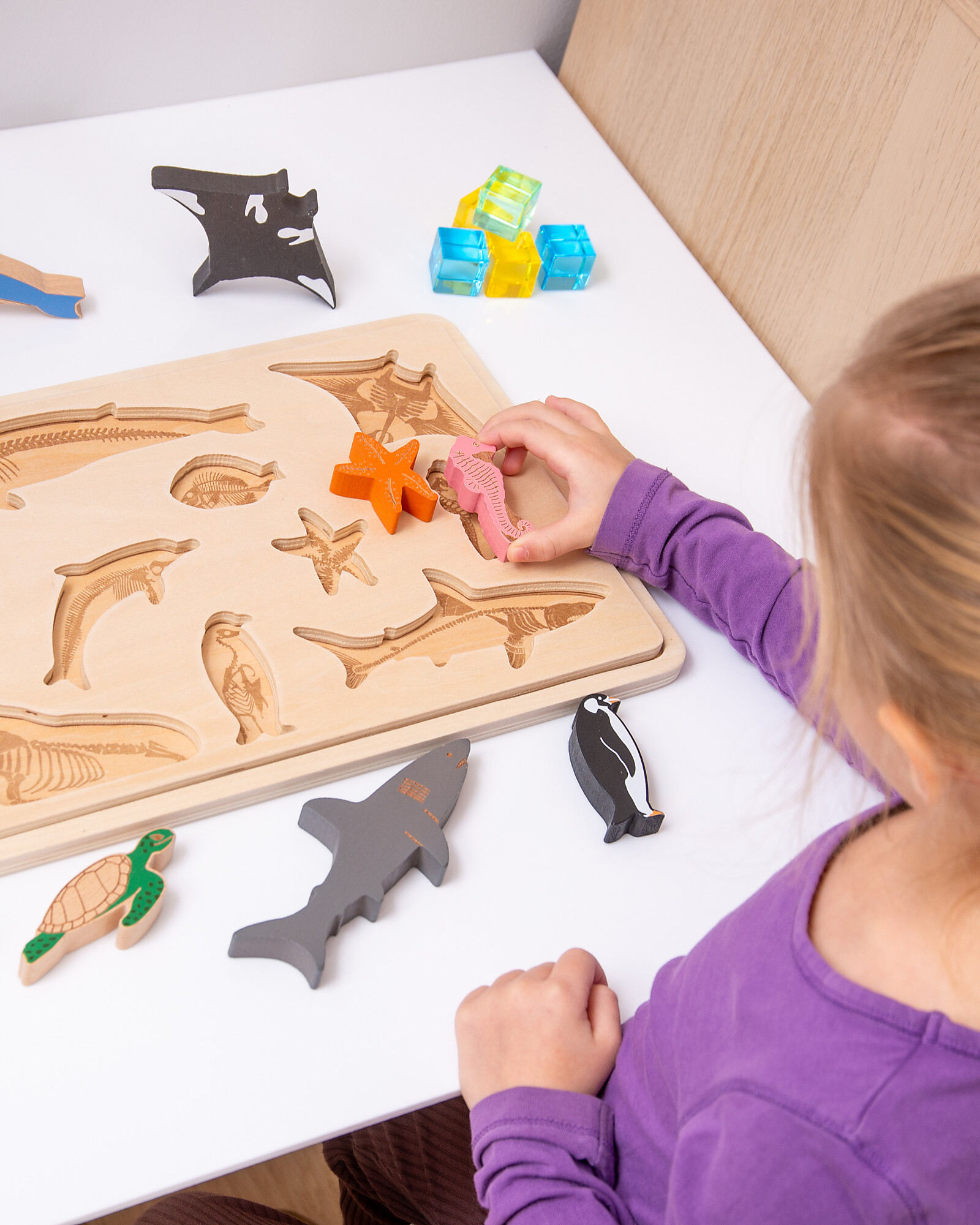 The set includes an ocean animals puzzle with tray. The tray measures 365 x 245 mm.