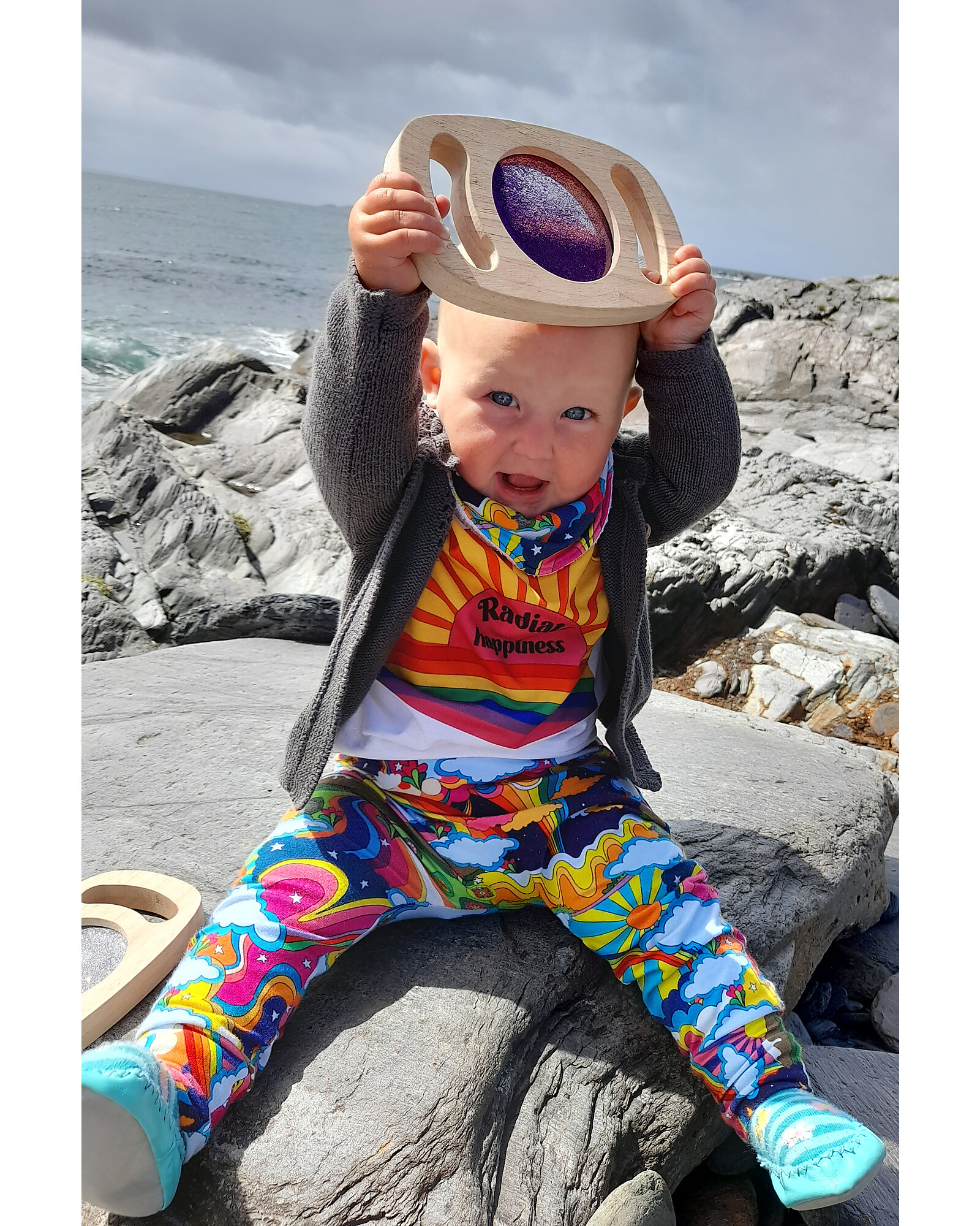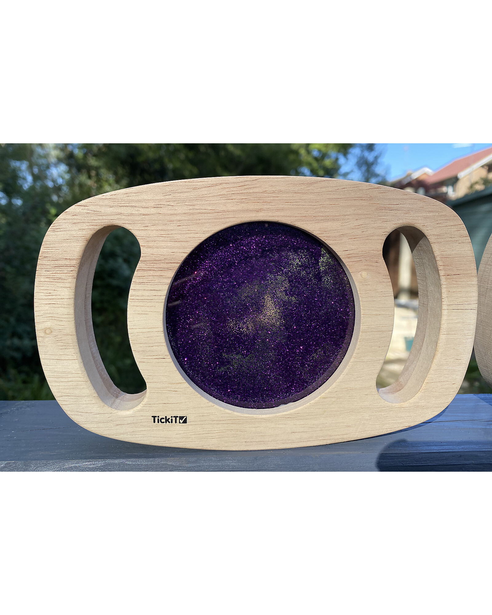 Sensory Toy in FSC Rubber Wood - Easy Hold - with Glitter Panel - Purple - 12m+
