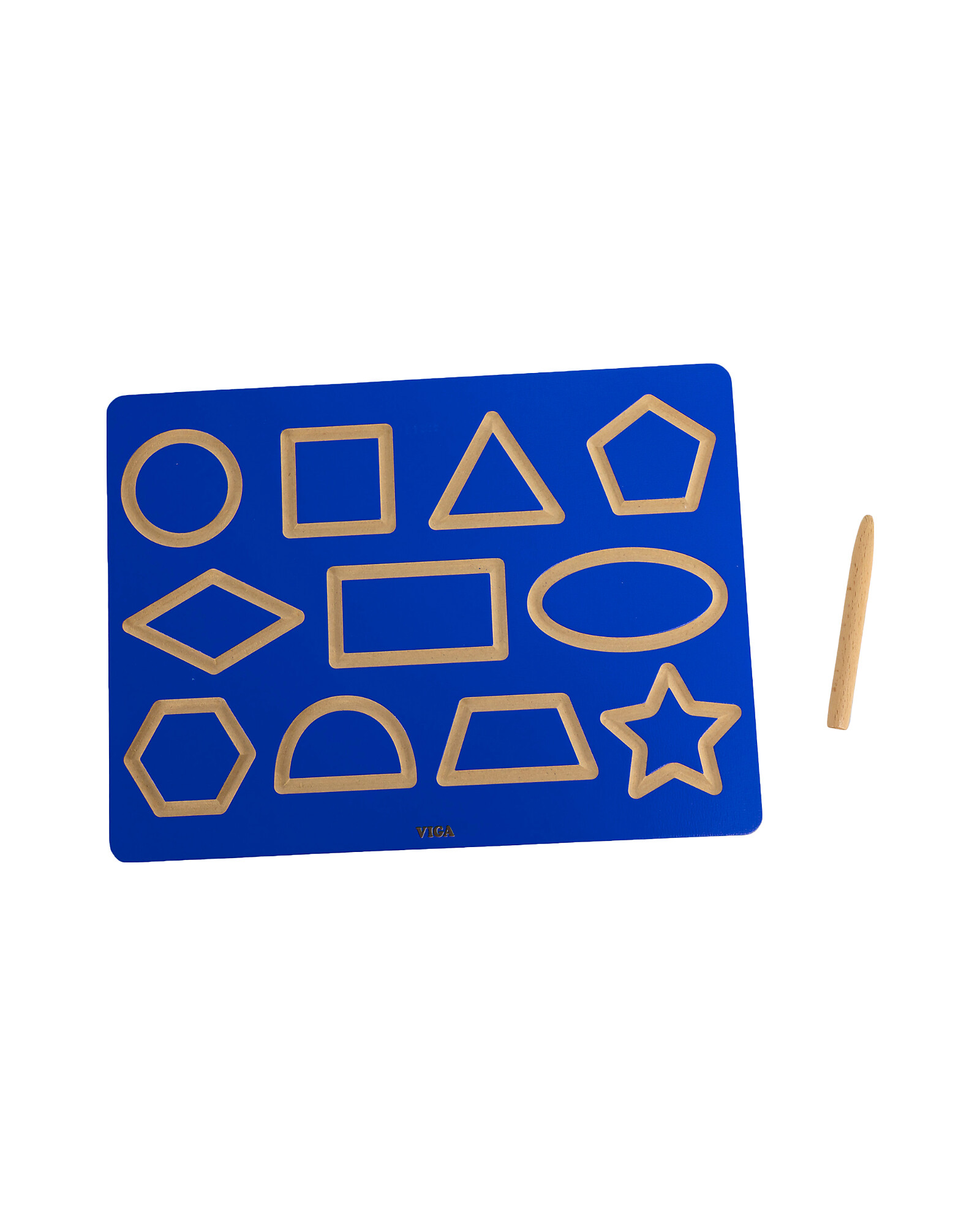 Support the development of essential skills with this shape tracing board, an educational tool designed for hands-on, intuitive, and engaging learning. Featuring 11 engraved shapes on a solid and durable surface, it offers children the opportunity to explore movement through touch.