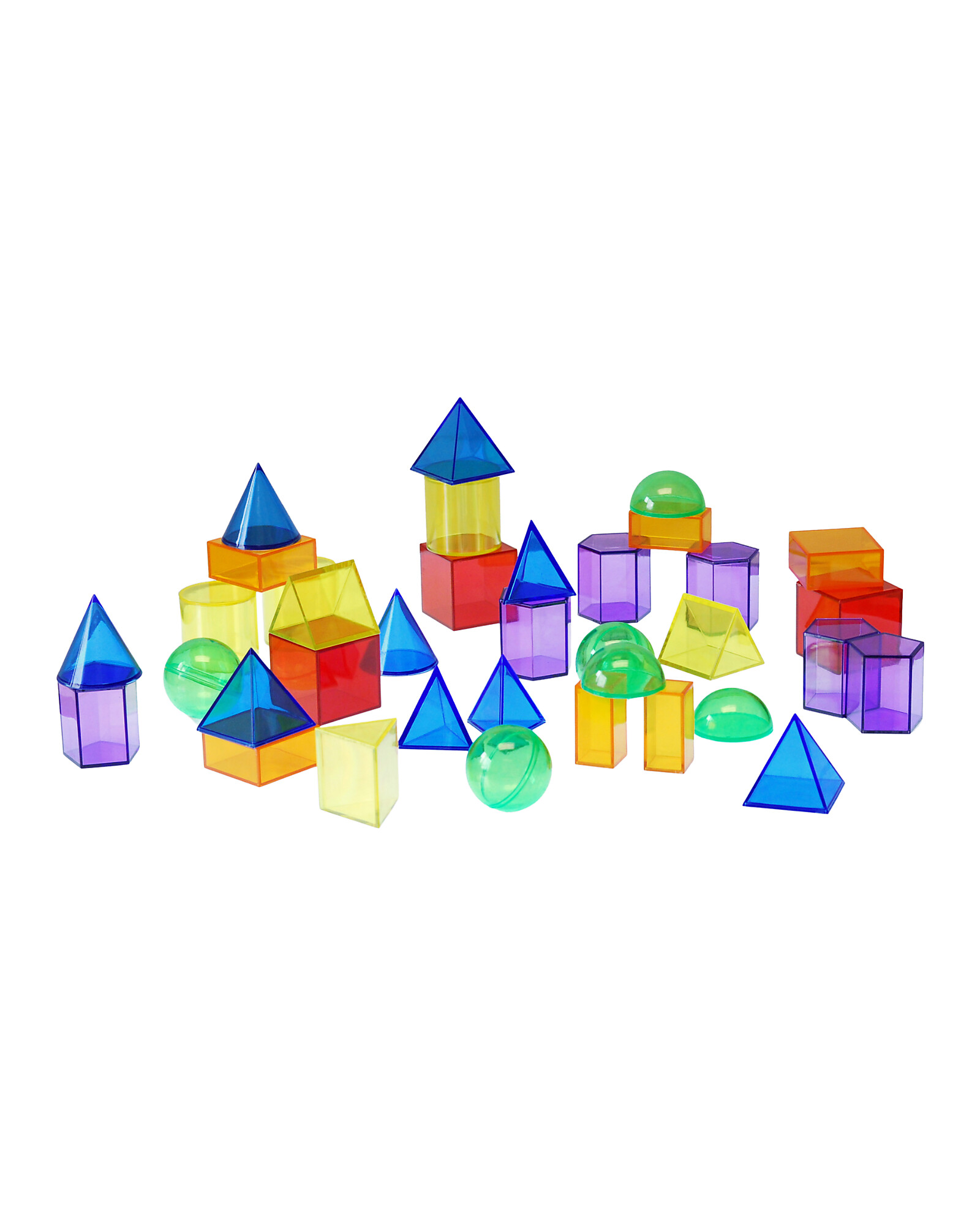 The translucent shaped geometric forms is a set of colorful 3D acrylic shapes, perfect for use on a light panel, to learn the names and characteristics of different shapes, as well as to learn about colors and color mixing.