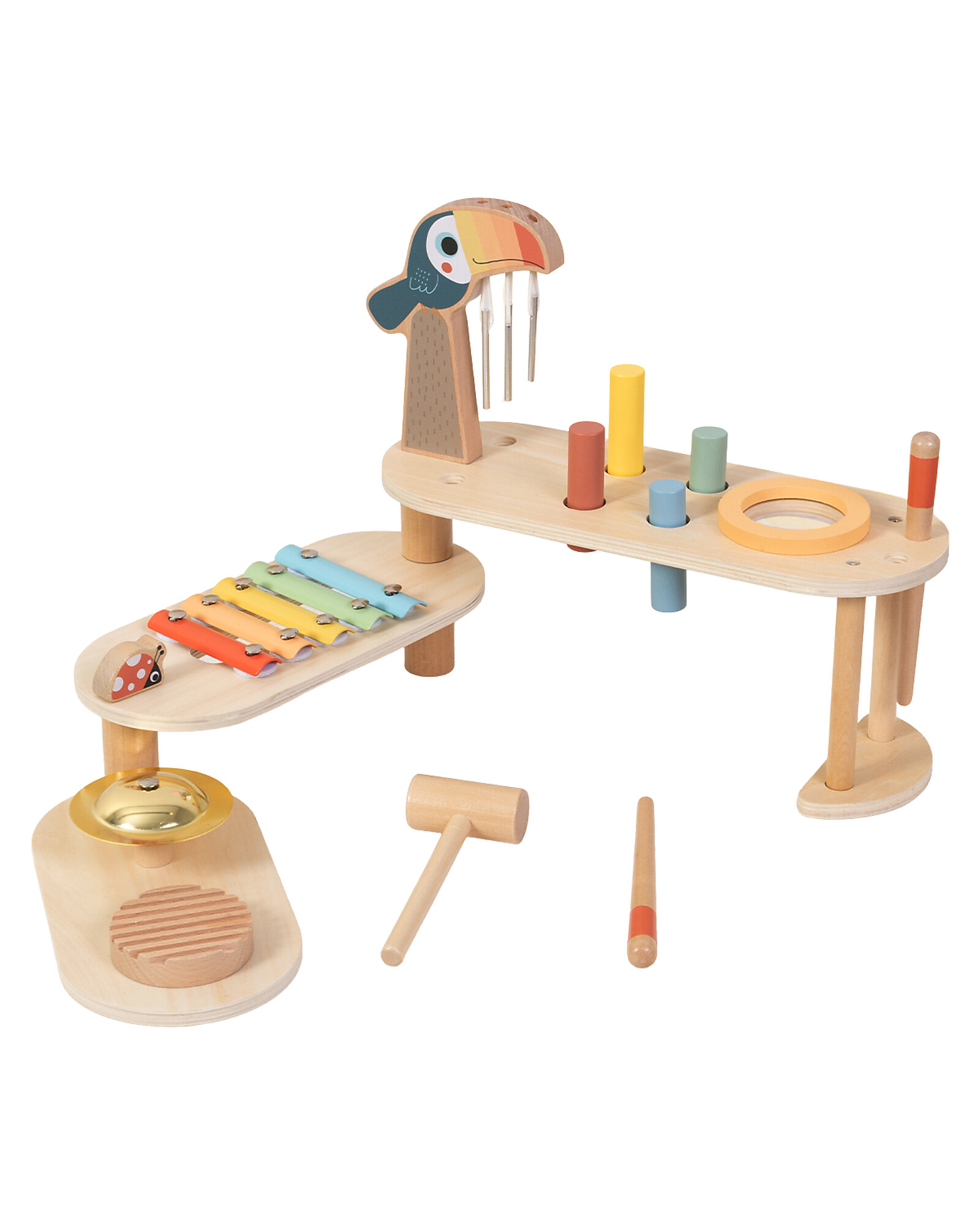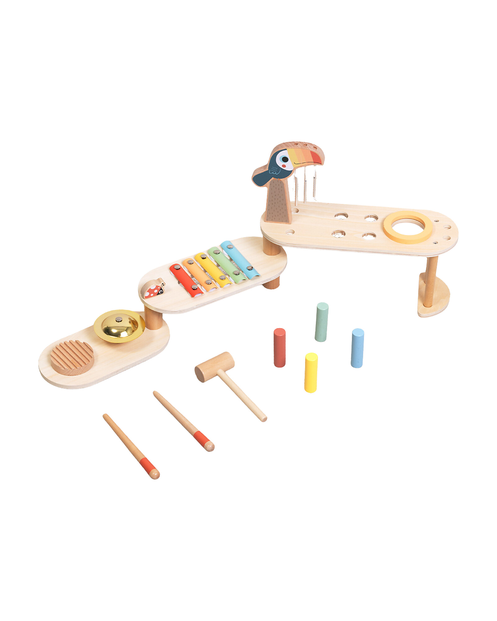 Music, maestro! This Foldable Wooden Music Set turns children into little musicians: the instruments in natural wood and metal produce authentic and melodious sounds, stimulating musical education and rhythmic creativity. The foldable design makes it easy to store and take anywhere. The plywood, MDF and juniper wood structure ensures quality and durability. A complete musical toy, perfect for little musicians from age 3!
