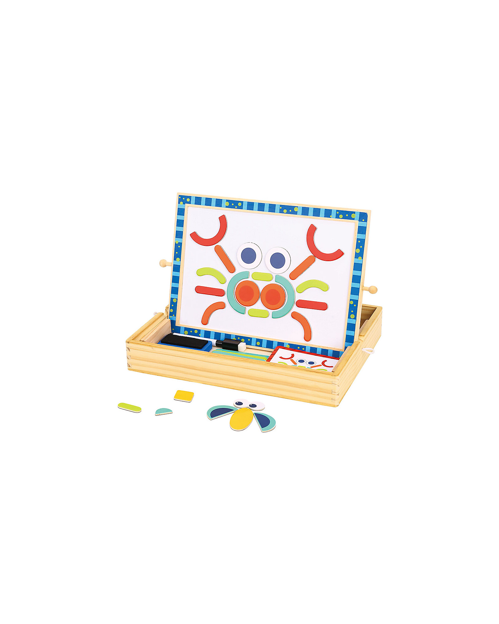 Write, draw, create endlessly! This Multi-activity Magnetic Board is children's creative hub: with 117 included pieces and over 30 modular shapes, children can draw, write and build magnetic figures on a single versatile surface. Pine wood, plywood and paper ensure sturdiness and durability. Stimulates creativity, writing and spatial thinking. An all-in-one creative toy, perfect for little artists from age 3!