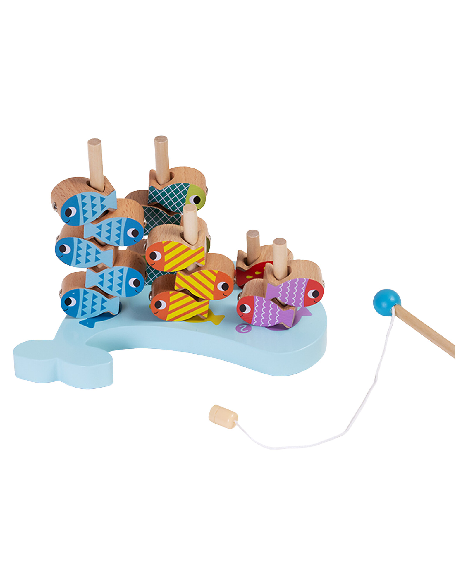 Who will catch the biggest fish? This Wooden Magnetic Fishing Game is the most fun pastime for children: thanks to the magnetic fishing rods, children can fish the 25 colourful fish from the wooden pond, developing hand-eye coordination and concentration. Juniper wood, MDF and magnets ensure quality and safety. A multifunctional game to play alone or with friends. Perfect for little fishermen from age 3!