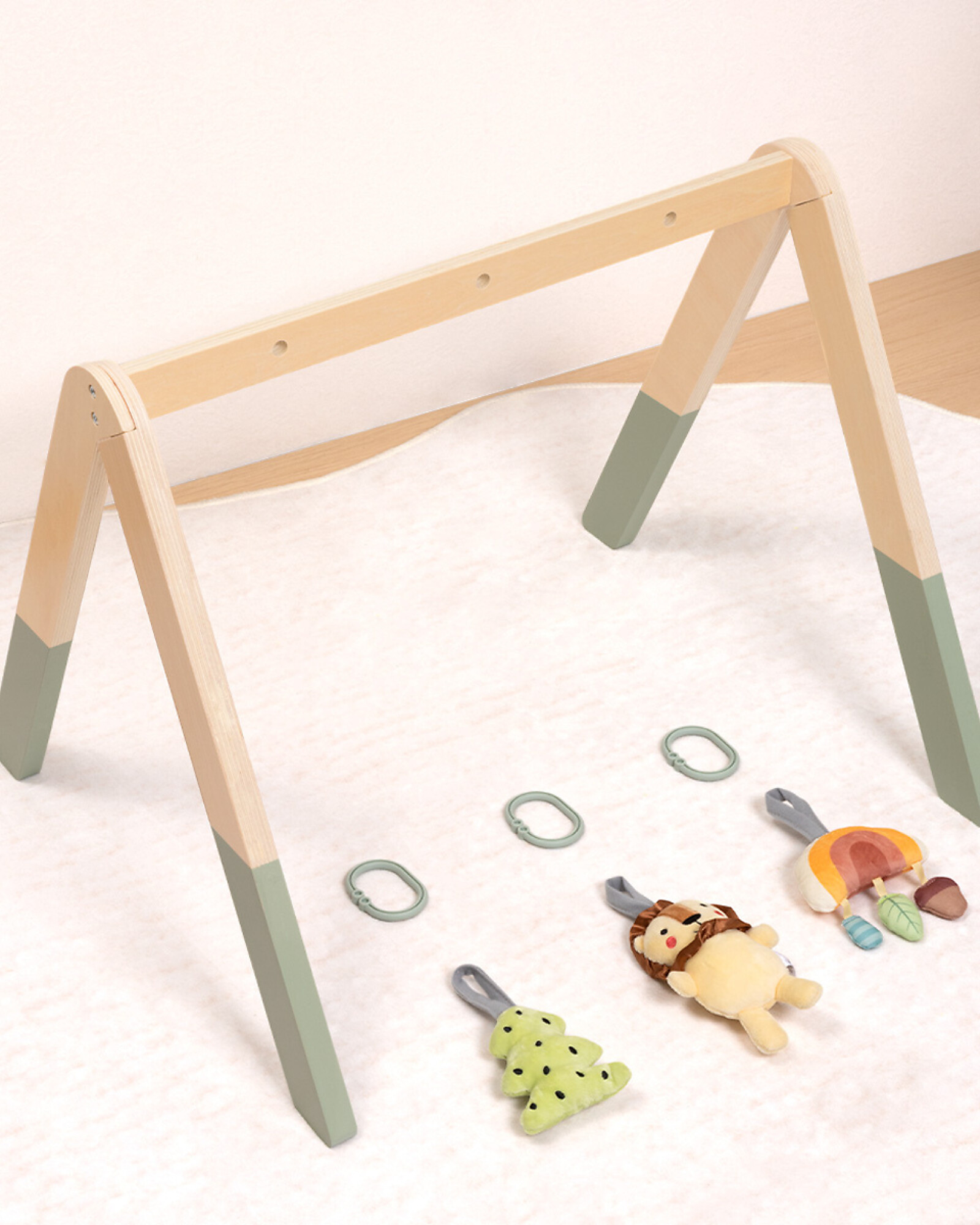- Design: Arch with hanging toys and play mat