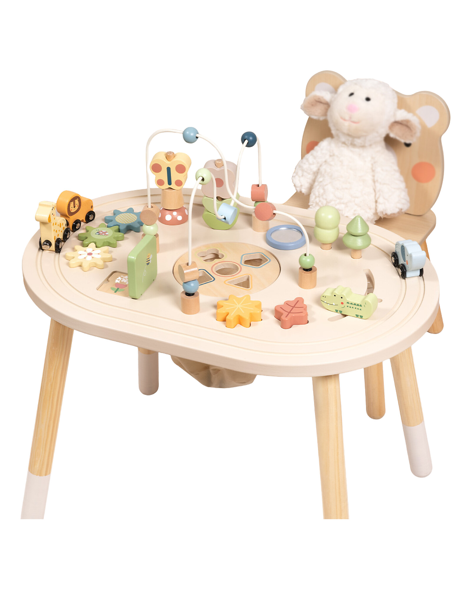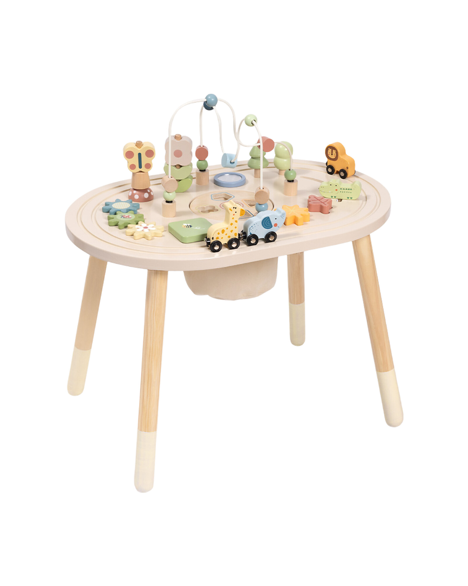 One table, a thousand possibilities! This Oval Multiactivity Table is the ideal play centre for children from 18 months: the oval surface features various integrated educational activities that stimulate dexterity, logic and creativity. The plywood and MDF structure is stable, safe and durable. The modern design fits perfectly in any child's room. A multifunctional and stimulating toy, perfect for all-round development!