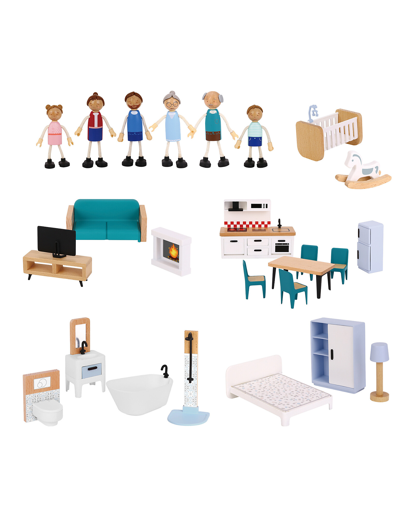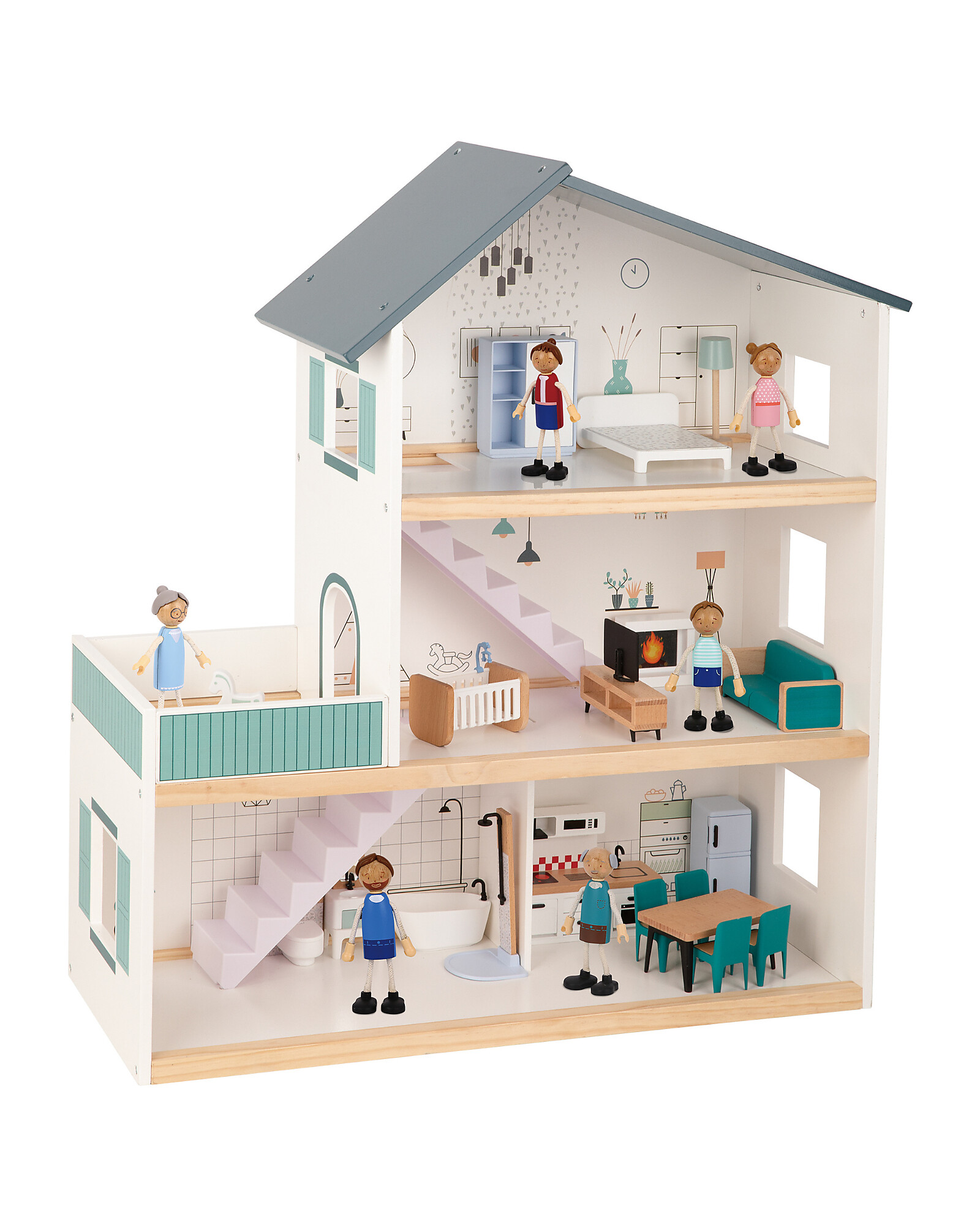 Wooden Dollhouse - 31 Pieces - 63 x 22.5 x 69.8 cm - 3+ Years