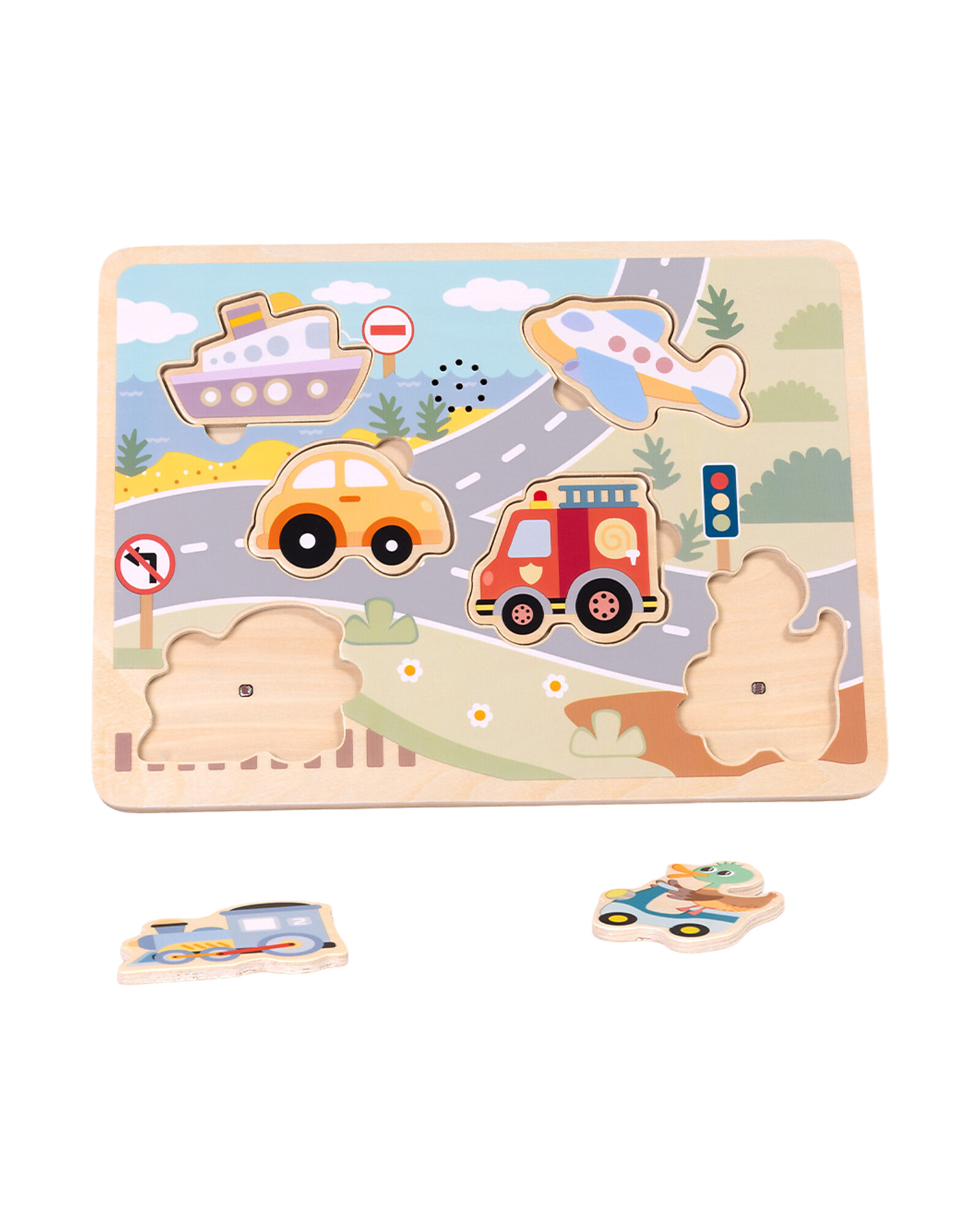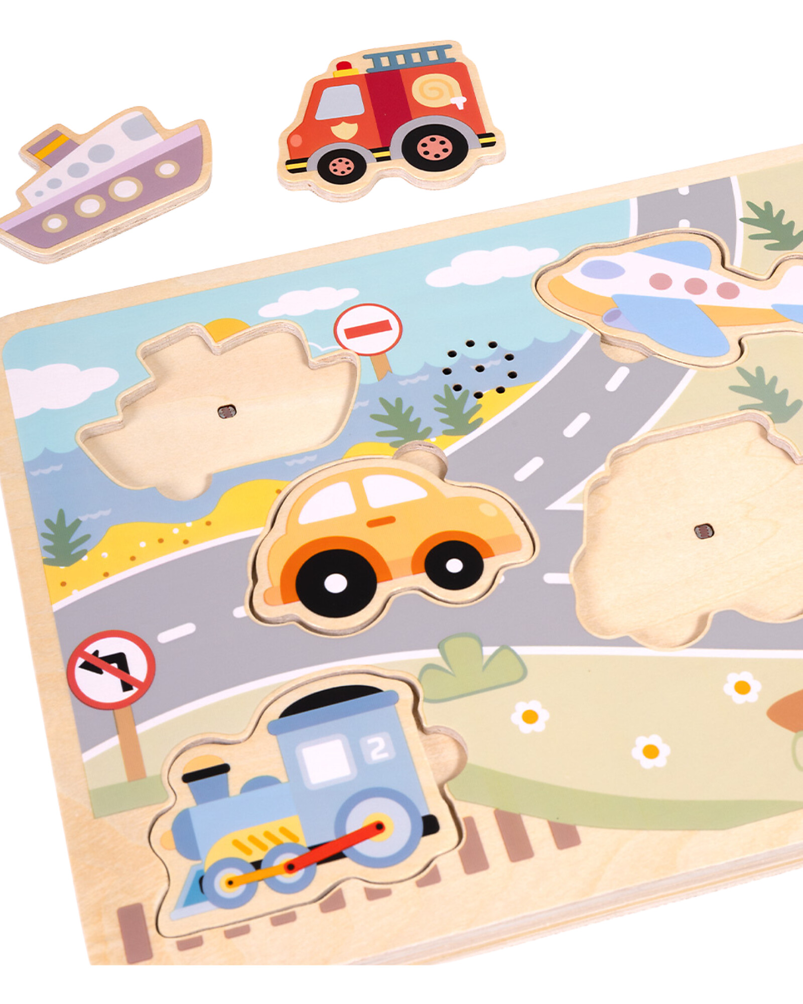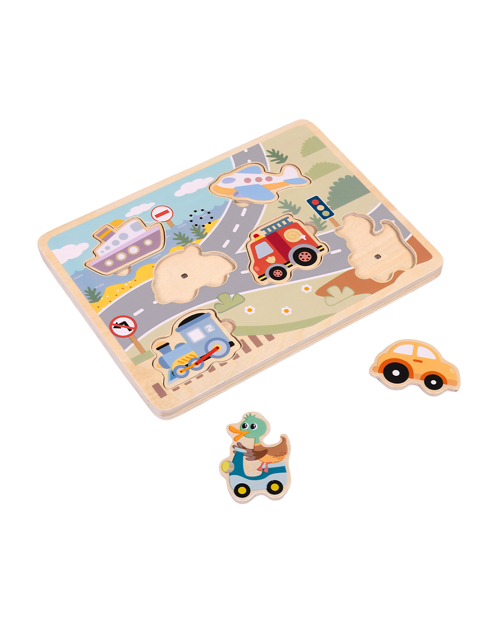 Wooden Interlocking Sound Puzzle - Vehicles - 29.5 x 21.5 x 1.5 cm - 18m+