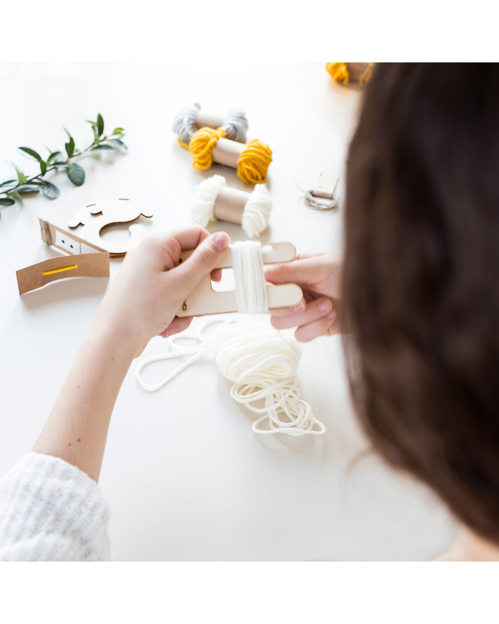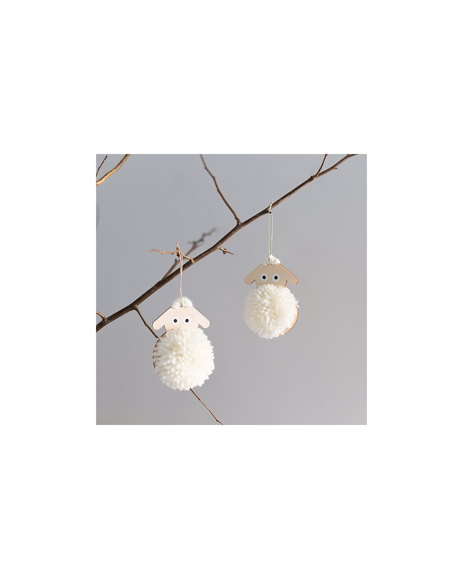 - Includes: Wooden supports, 2 balls of white fabric, twine, craft stick and fake eyes