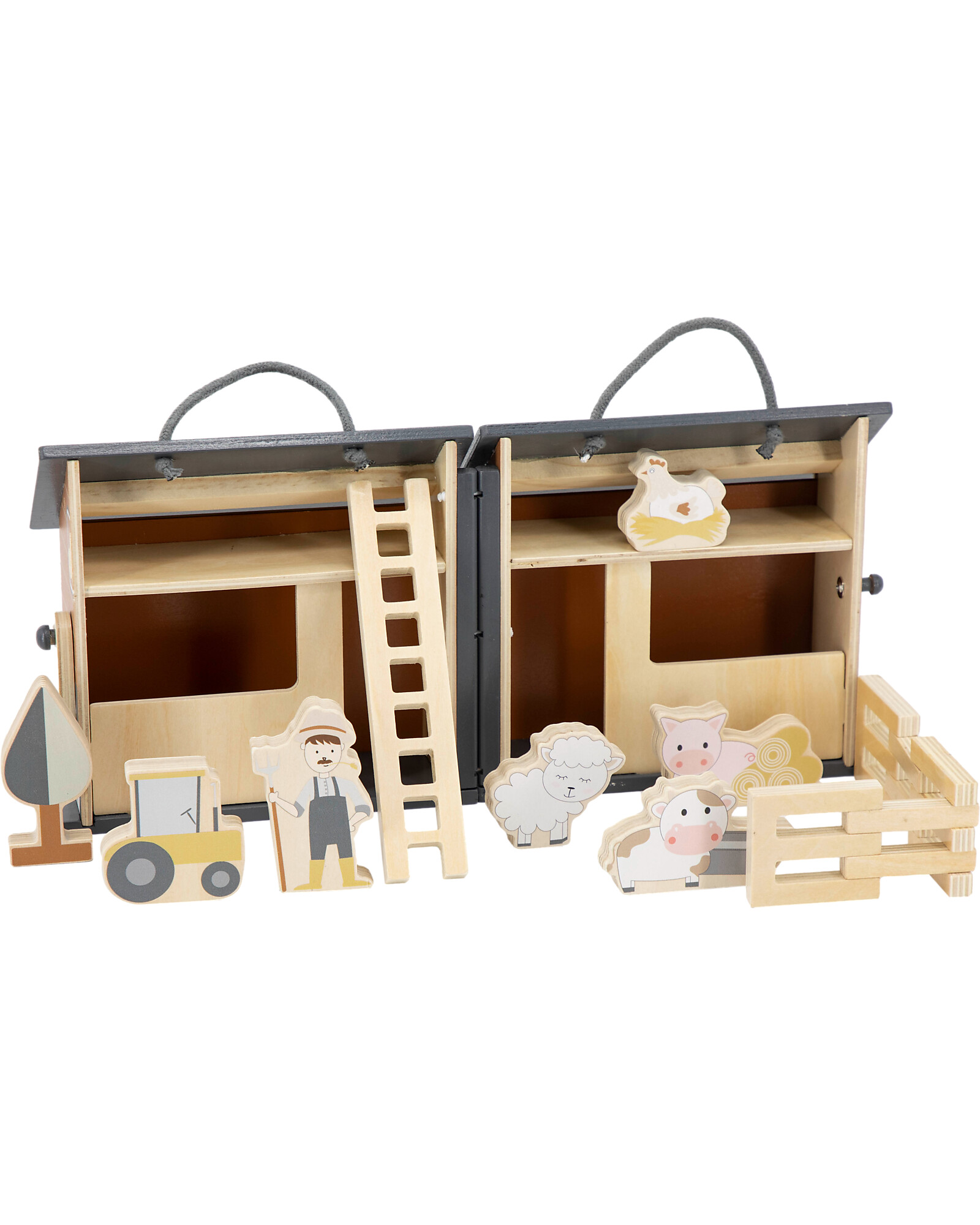 The Foldable Farm is the perfect toy for children aged 3 and up who love to explore and have fun with many interactive elements inspired by farm life. Made from high-quality wood and plywood, it is painted with non-toxic water-based colors in vibrant shades of red, gray, and natural, ensuring safety and respect for little ones' sensitive skin. Thanks to its smart design, the farm folds easily for compact storage, while the convenient handle makes it very easy to carry—ideal for taking along on trips or to friends’ houses.