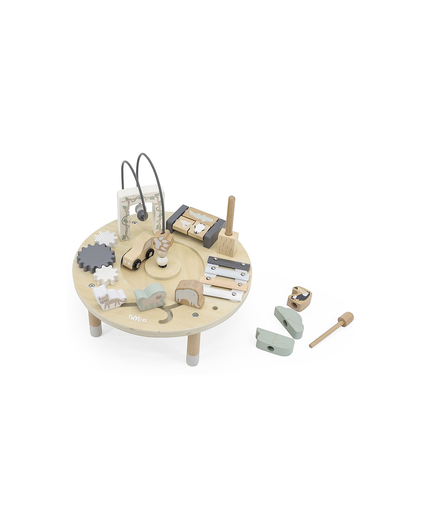 A wooden activity table designed to engage all the senses through a variety of thoughtful play features. Animals, gears, xylophone, car track and shape sorters turn every moment into a chance to learn through play. Perfect for encouraging coordination, fine motor skills and a child’s natural curiosity. A rich blend of smart stimulation that grows with your child, promoting active exploration and independent play in a safe and delightful way.