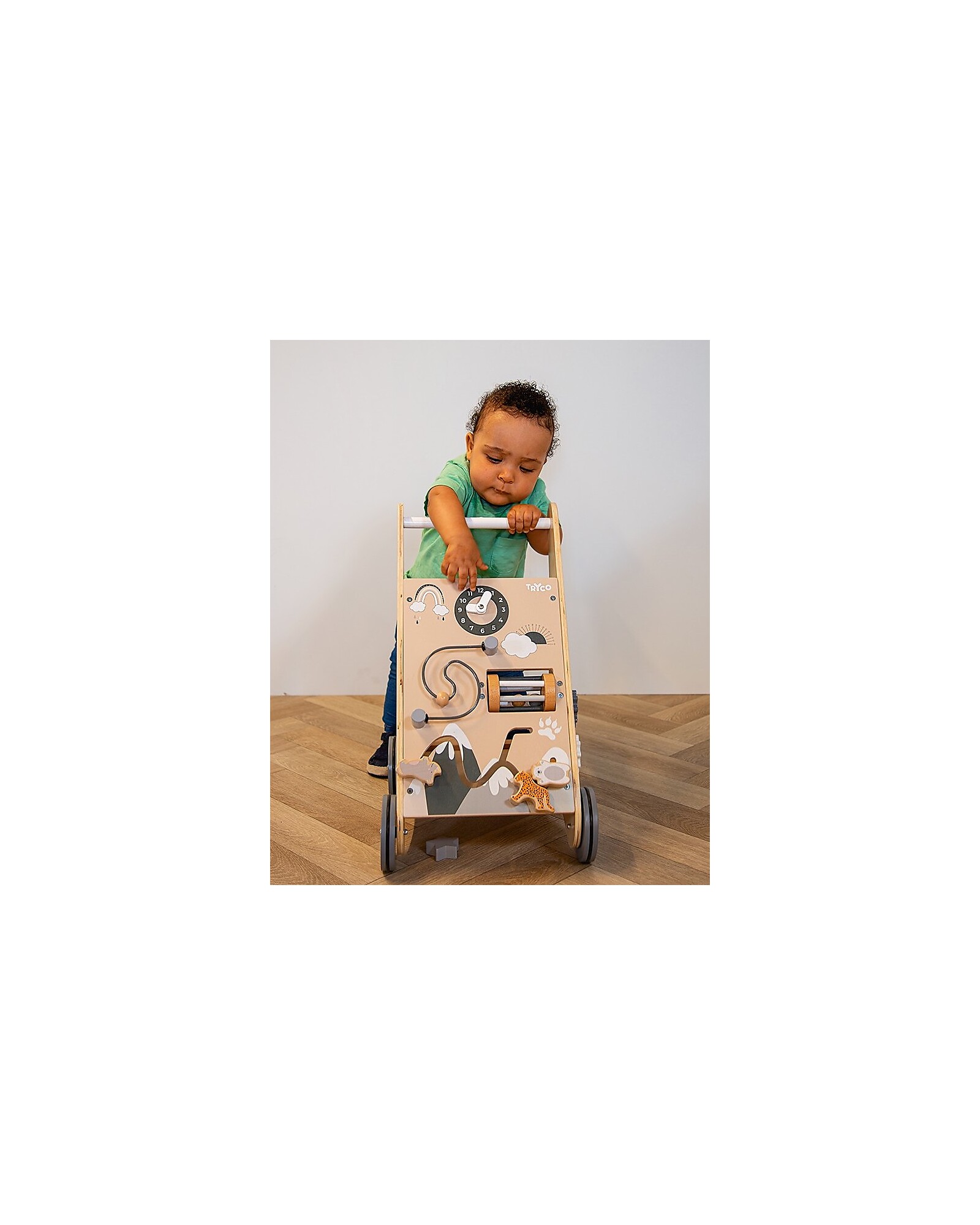 The Wooden Nature Baby Activity Walker - with Blocks is the perfect companion to support your child’s first steps, promoting balance and coordination. Designed for children aged 12 months and up, it is made from safe materials such as wood, MDF, and plywood, and painted with non-toxic water-based colors that are gentle and safe for little ones. The walker features numerous interactive elements that stimulate curiosity and fine motor skills, keeping your child entertained during playtime. With its natural, gray, and white tones, it’s an elegant and functional toy, ideal for your little one’s early adventures in independence.