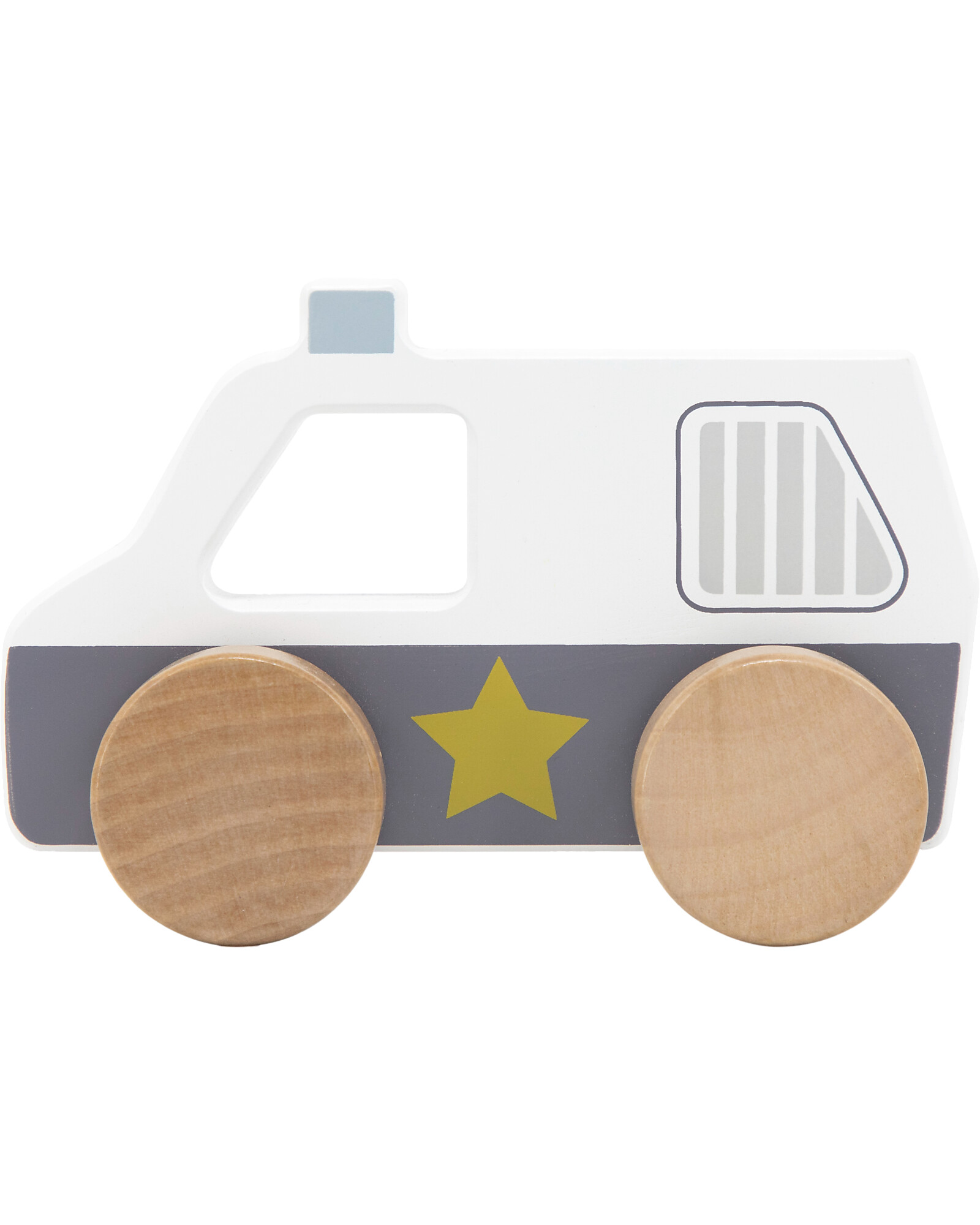 The Wooden Police Car Toy is designed for children aged 18 months and up, offering a simple and fun play experience that stimulates imagination and symbolic play. Made from high-quality wood and MDF, it is finished with non-toxic water-based paints that are safe for little ones.