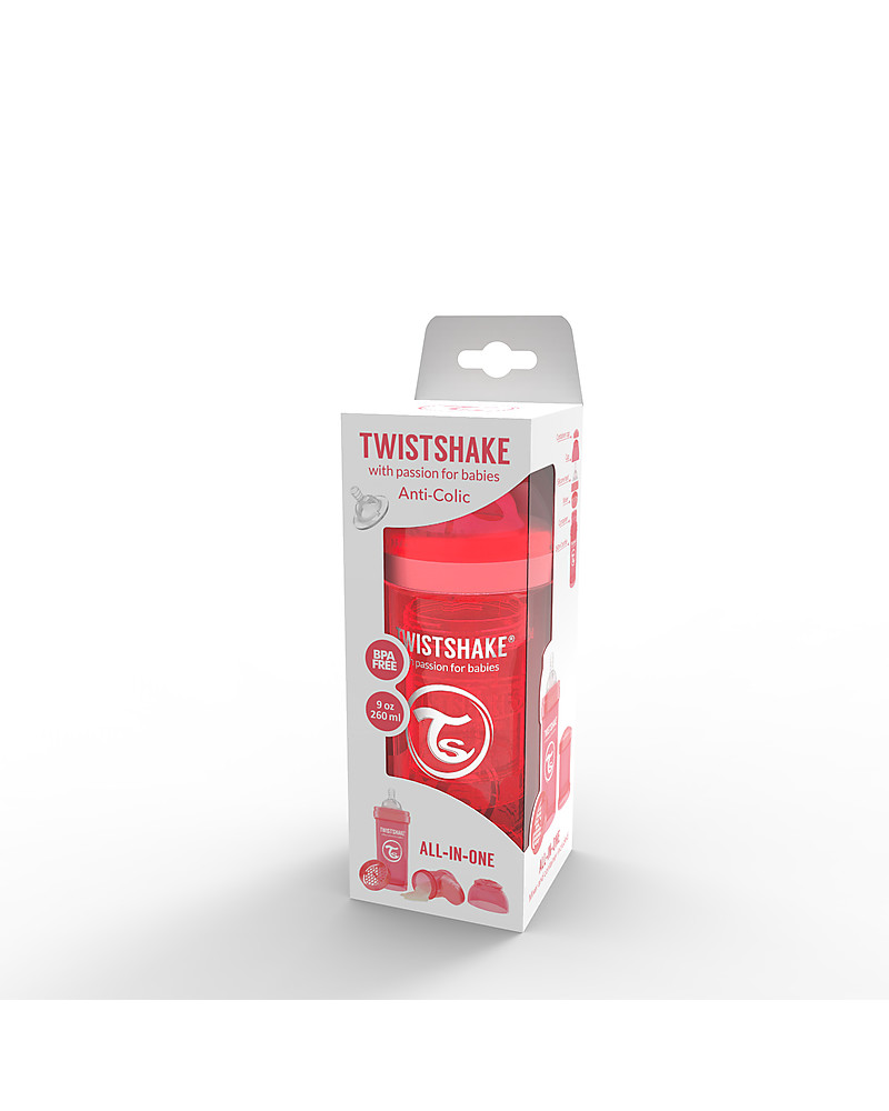 Designed by the innovative Swedish brand Twistshake, this 260 ml anti-colic baby bottle is irresistible! It has all typical features of this brand: convenience, high-quality materials, practicality and a contemporary and colorful design.