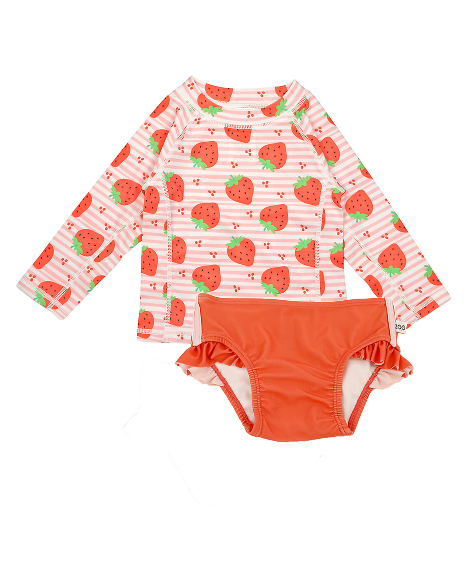 2 Piece Set - Rash Guard Top + Bikini Bottom - Strawberry - UPF 50+