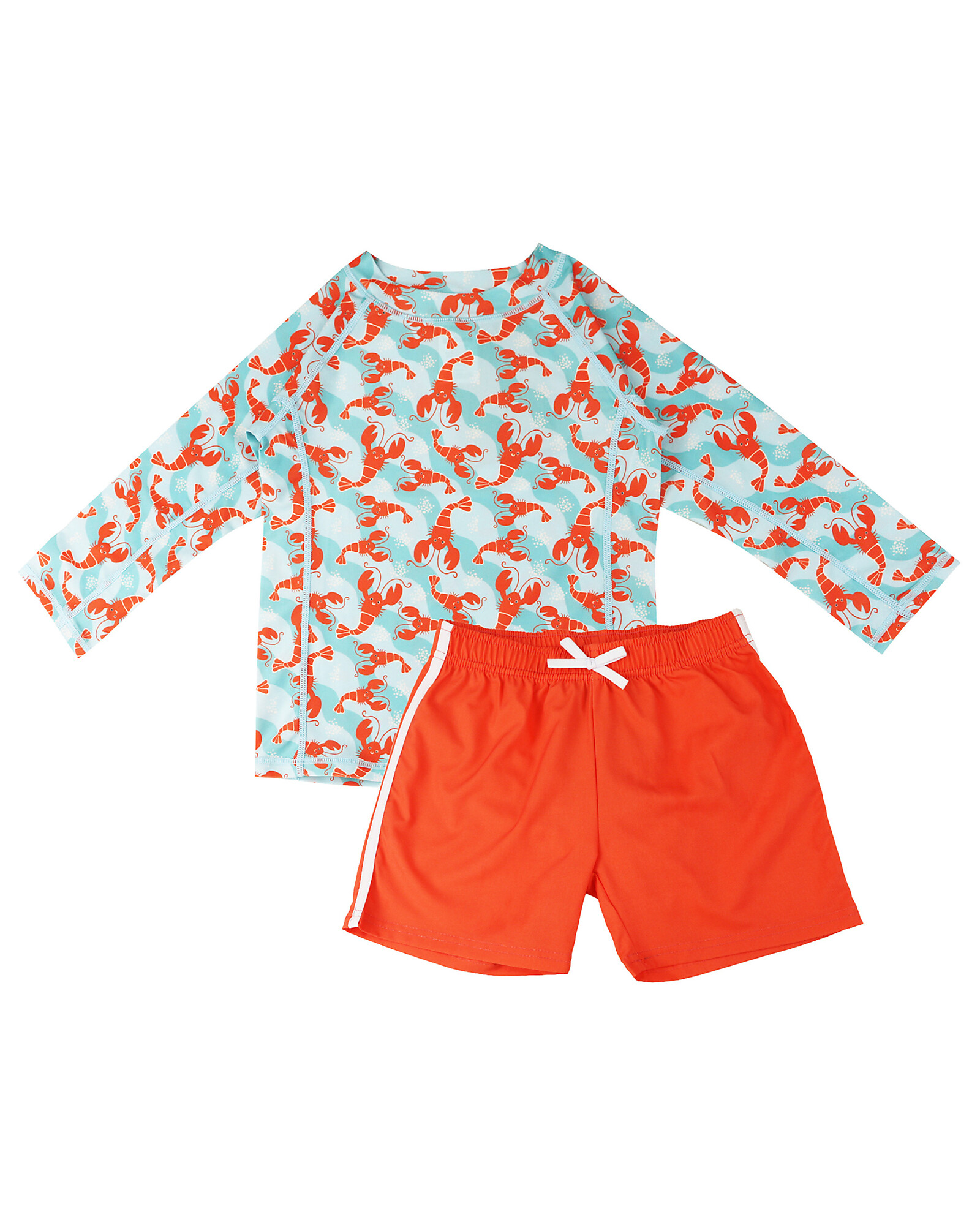 2 Piece Set - Rash Guard Top + Swim Short - Logan the Lobster - UPF 50+